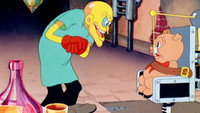 A hungry little pig eats a couple of pies off the windowsill. When it's time for dinner, he ties together the spaghetti of all the other little pigs and eats it all. That night, he has a nightmare where he is force-fed by a mad scientist.