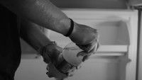 A young man tries to keep his slimy palms a secret.