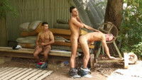 Prison Breakers is the kind of movie at which Alexander Pictures really excels. Alexander takes you into the woods to some abandoned construction site with a bunch of sweaty muscle studs, shoots through the grass so you feel like you've happened upon it yourself, and just tells the guys to bring their bug spray because it's going to get nasty. This movie features some of Alexander's regular fuckers with some new faces. There is more testosterone in this place than should be allowed and it is packed with heavy hitters from start to finish. Grab your lube and enjoy the view.