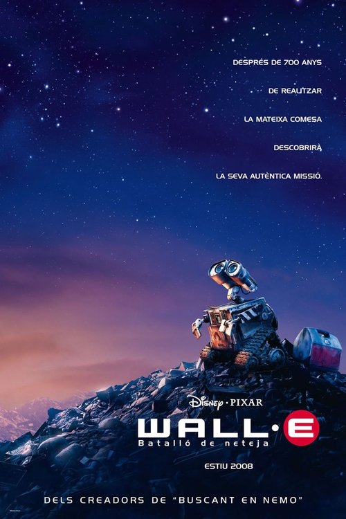 After hundreds of years doing what he was built for, WALL•E— a robot designed to clean up the earth—discovers a new purpose in life when he meets a sleek search robot named EVE. EVE comes to realize that WALL•E has inadvertently stumbled upon the key to the planet's future, and races back to space to report to the humans. Meanwhile, WALL•E chases EVE across the galaxy and sets into motion one of the most imaginative adventures ever brought to the big screen.