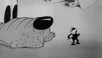 Pluto tries to help Mickey with some spring cleaning and leaf gathering.