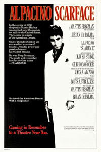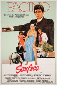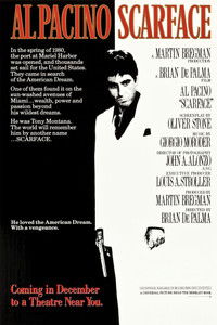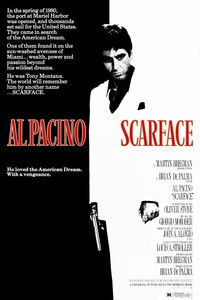 After getting a green card in exchange for assassinating a Cuban government official, Tony Montana stakes a claim on the drug trade in Miami. Viciously murdering anyone who stands in his way, Tony eventually becomes the biggest drug lord in the state, controlling nearly all the cocaine that comes through Miami. But increased pressure from the police, wars with Colombian drug cartels and his own drug-fueled paranoia serve to fuel the flames of his eventual downfall.