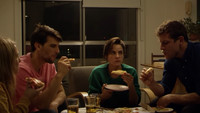 A group of friends order a pizza and have a philosophical talk about not paying for it.
