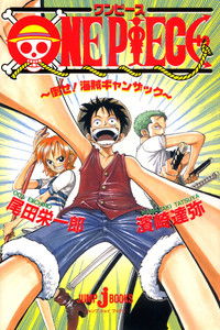 While Luffy and his crew of Zoro and Nami are starving on their small boat, they are attacked by a large monster. Nami is taken away, while Luffy and Zoro wash up on shore. There they meet a young girl, Medaka, and learn of the sad history of the island. The evil Pirate Ganzack has taken away all the men in the village and enslaved them, including Medaka's father. Now Luffy, Zoro, and Medaka must infiltrate Ganzack's base in order to rescue the villagers and Nami.