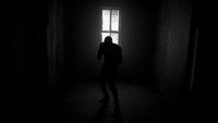 A boxer trains with an old man in vacant building.
