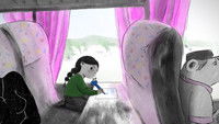 In the 1990s, eight-year-old Agata leaves her Polish homeland to take a bus to Belgium by herself. Anxious about the journey, she begins to write a letter to her father who has stayed behind in Poland. When she drops her pencil and it rolls away, Agata is forced to overcome her shyness. Searching for it, she weaves her way between the rows of seats and plunges into a fantastical world inhabited by strange half-human, half-animal passengers. Agata’s perceptions transform the reality of migration into an imaginative experience of initiation.