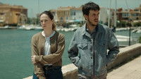 A boy and a girl walk along the beach, oblivious to the scenery around them.