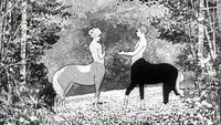 A female centaur enters a clearing in the woods and picks flowers. She is met by a male centaur and the two romance each other. They then seek parental consent for their union. Surviving footage of a now lost film.