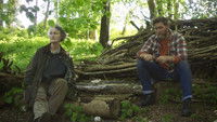 Thinking she is alone, a woman desperately searches the woods for a hidden secret.
