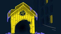 A gray world filled with black animals, gray everyday life, and damp weather, where suddenly a yellow cat with blue eyes climbs out of its shabby cathouse.
