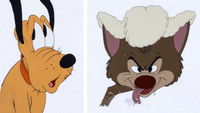 A coyote and his rather dim son stalk the sheep that Pluto is guarding.