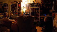 three friends conclude the second movie of a trilogy when one has to leave, but one of the hosts is furvently against that, because there's still one movie left to watch.