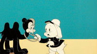 Porky finds out that Ali-Baba and his Dirty Sleeves plan to attack the fort; it's up to him to go warn the fort. He gets there to discover everyone has left for the Legion convention in Boston. Porky and his rented camel fend off the attackers themselves for a while, but when the situation gets dire, the young camel summons its mother. Momma takes care of the attacker that's menacing them. The secret weapon, who has been sitting on the bench with an artillery shell strapped to his head, now comes in, but runs right through the fort and into Ali-Baba.