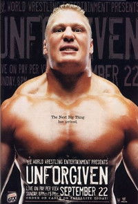 Unforgiven (2002) was a PPV presented by Castrol GTX that took place on September 22, 2002, at the Staples Center in Los Angeles, California. It was the fifth annual WWE Unforgiven event. The main event from the SmackDown! brand featured WWE Champion Brock Lesnar fighting The Undertaker to defend the title. The main event from the Raw brand featured World Heavyweight Champion Triple H defending against Rob Van Dam for the title. Four matches were featured on the undercard. The first was a singles match between Chris Benoit and Kurt Angle. The next was Trish Stratus challenging Molly Holly for the WWE Women's Champion. Eddie Guerrero fought Edge and WWE Intercontinental Champion Chris Jericho defended his title from Ric Flair.