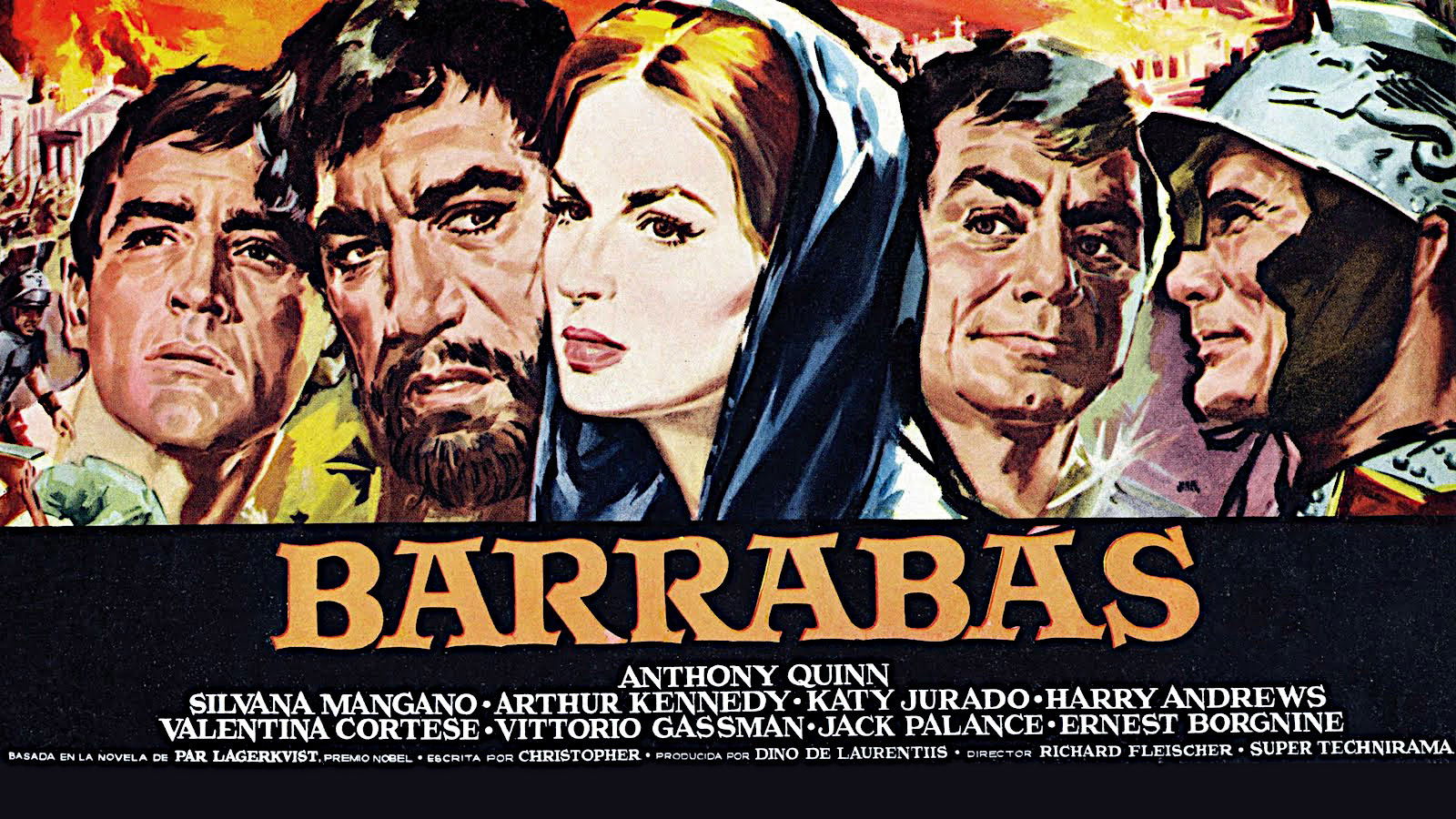 Epic account of the thief Barabbas, who was pardoned for his crimes and spared crucifixion when Pilate offered the Israelites a choice to pardon Barabbas or Jesus. Struggling with his spirituality, Barabbas goes through many ordeals leading him to the gladiatorial arena, where he tries to win his freedom and confront his inner demons, ultimately becoming a follower of the man who was crucified in his place.