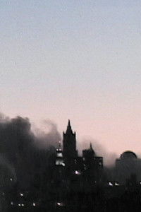 Disintegration Loop 1.1 consists of one static shot of lower Manhattan billowing smoke during the last hour of daylight on September 11th, 2001, set to the decaying pastoral tape loop Basinski had recorded in August, 2001. Shot from Basinski's roof in Williamsburg Brooklyn, this is an actual documentary of how he and his neighbors witnessed the end of that fateful day. It is a tragically beautiful cinema verite elegy dedicated to those who perished in the atrocities of September 11th, 2001.