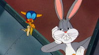 Relaxing with a carrot at a U.S. Army air field, Bugs is reading "Victory Through Hare Power" and scoffs at the notion of mentioned gremlins, little creatures who wreak havoc on planes with their diabolical sabotage.