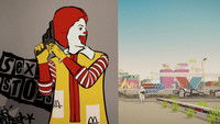 Two cops portrayed by Michelin Men chase an armed Ronald McDonald through the streets of a fictionalized, stylized city.