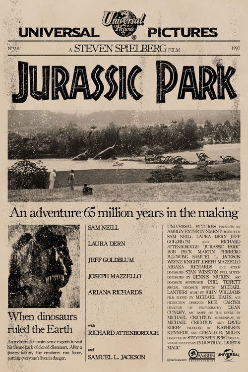 A wealthy entrepreneur secretly creates a theme park featuring living dinosaurs drawn from prehistoric DNA. Before opening day, he invites a team of experts and his two eager grandchildren to experience the park and help calm anxious investors. However, the park is anything but amusing as the security systems go off-line and the dinosaurs escape.