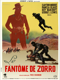 Although ostensibly the grand-son of the legendary hero, Clayton Moore's Ken Mason is little more than a cowboy in a black mask in this 12 chapter Republic serial. Mason, the head of the telegraph line work crew, assumes his ancestor's trade-mark mask (but not whip) in order to prevent a local czar (Roy Barcroft) from sabotaging the burgeoning telegraph line. Pamela Blake, a brunette starlet formerly known as Adele Pearce, played Mason's imperiled girlfriend, and the serial also benefitted from the usual competent work of Republic's great stunt-performers, including Dale van Sickel, Tom Steele, Eddie Parker, and Joe Yrigoyen.