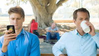 Two mates discuss the hardships of their lives over a bad cup of coffee, oblivious to the beauty and sadness surrounding them.