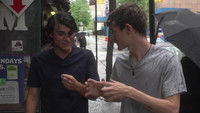 Two friends vie for the attention of a stranger who passes out at their doorstep.