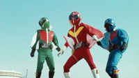 When Magman makes a blunder that finally makes him lose the Black Cross Furher's trust, he begins a rampage against EAGLE with Navarone Fortress, the Gorenger must finally stop them. It features the destruction of Volcano Mask General Magman and his Mobile Fortress Navarone, as well as the Gorenger Machines, and the first appearance of his successor Commander-in-Chief Golden Mask. This is a theatrical version of episode 54 of the Himitsu Sentai Gorenger television series.