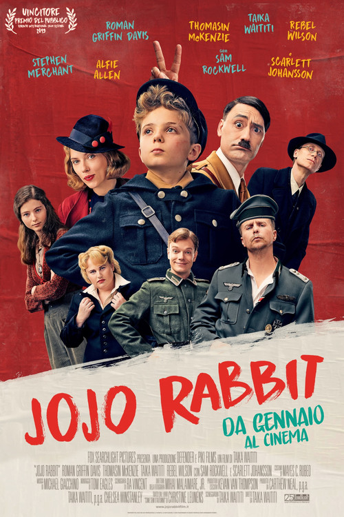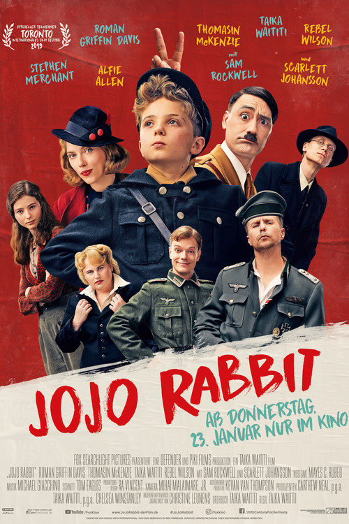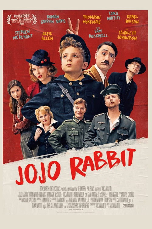 Jojo, a lonely German boy during World War II has his world shaken when he learns that his single mother is hiding a Jewish girl in their home. Influenced by a buffoonish imaginary version of Adolf Hitler, he begins to question his beliefs and confront the conflict between propaganda and his own humanity.