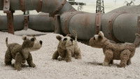 Life is not easy for Laika, a dog on the outskirts of a big Russian city. She is caught and forcibly retrained to become a pioneer in astronautics. Soon after her lift-off into space, a number of animals follow that are hurriedly launched from Houston and Baikonur. The animals travel astray, but finally manage, with the help of a black hole, to colonize a faraway planet. After a short period of harmonious, undisturbed co-existence with indigenous life forms, however, first human cosmonaut run ashore on their planet, and their harmonious life, indeed their very survival, are suddenly in jeopardy.