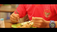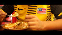 A Malaysian eats at an Indonesian food court in Jakarta during times of confrontation & disputes between the two countries.