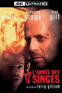 In the year 2035, convict James Cole reluctantly volunteers to be sent back in time to discover the origin of a deadly virus that wiped out nearly all of the earth's population and forced the survivors into underground communities. But when Cole is mistakenly sent to 1990 instead of 1996, he's arrested and locked up in a mental hospital. There he meets psychiatrist Dr. Kathryn Railly and the son of a famous virus expert who may hold the key to the Army of the 12 Monkeys; thought to be responsible for unleashing the killer disease.