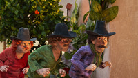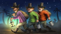The three thieves Kasper, Jesper and Jonathan lives together with their always hungry lion in the little town of Kardemomme town, the home to a fair but kind police officer, and the strict Aunt Sofie.