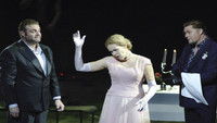 The director, Roland Schwab, has created his version of Hell. The set is like a high iron walled hanger and the stage is continually occupied with people who look like fugitives from Mad Max and who interact with Mefistofele. The orchestra and choir are wonderful. Rene Pape gives a nuanced interpretation with a certain amount of sardonic humour under the evil. His singing and acting are first rate, as is that of Kristine Opolais and Joseph Calleja.