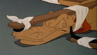 Minnie's learning first aid; she asks Pluto and Figaro for help. Pluto keeps throwing Figaro into buckets and otherwise getting him into trouble. Then, when Minnie has Pluto all trussed up in splints, Figaro taunts him.