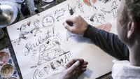 An artist draws the scenes to the lyrics at pace with the song.