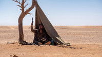 In the not-too-distant future, two drifters traveling through the desert stumble across the biggest gold nugget ever found and the dream of immense wealth and greed takes hold. They hatch a plan to excavate their bounty, with one man leaving to secure the necessary tools while the other remains with the gold. The man who remains must endure harsh desert elements, ravenous wild dogs, and mysterious intruders, while battling the sinking suspicion that he has been abandoned to his fate.