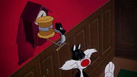 Porky Pig and Sylvester the Cat spend the night in an old dark house, whose horrors only Sylvester sees.