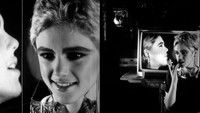 A 16mm Warhol film of Edie Sedgwick sitting in front of a television monitor on which is playing a prerecorded videotape of herself. On the videotape, Edie is positioned on the left side of the frame, facing right; she is talking to an unseen person off-screen to our right. In the film, the “real” or “live” Edie Sedgwick is seated on the right side of the film frame, with her video image behind her, and she is talking to an unseen person off-screen to our left. The effect of this setup is that it sometimes creates the rather strange illusion that we are watching Edie in conversation with her own video image.