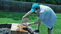 A boy embraces the future while putting away the past.